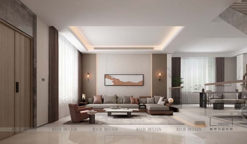 1、高挑天花板设计:如果别墅拥有高挑的天花板,可以考虑运用吊顶、石膏板或木质梁等元素来突出其高度感,并增加视觉上的层次感。