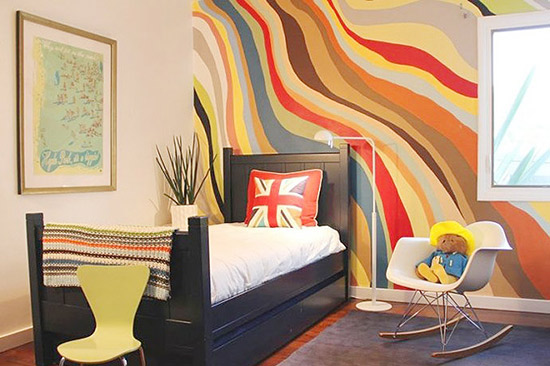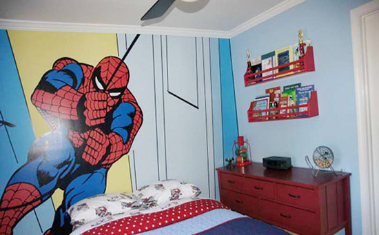 勇敢的英雄能带给孩子正面的影响,小主人一定非常崇拜蜘蛛侠,将其绘在床头墙面上,正义的侠士精神伴随孩子入眠,对孩子的成长也是极好的.