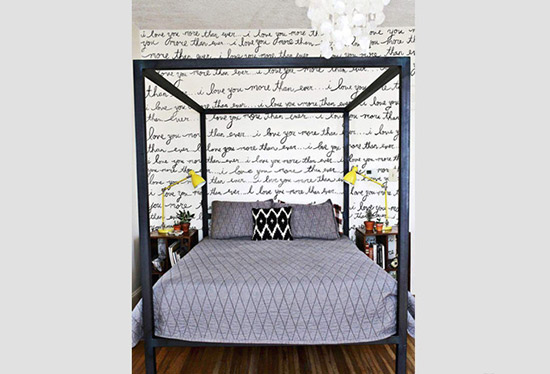 如果没有好的创意或者不会绘画,不妨学习下这款房间的设计,在墙面书写上一串串英文字符,简单还显得有书香气质哦.