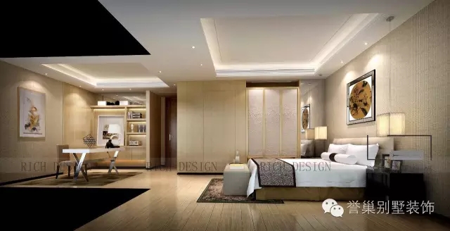 传统中透着现代,现代中揉着古典。这样就以一种东方人的“留白”美学观念控制的节奏,显出大家风范,其墙壁上的字画无论数量还是内容都不在多,而在于它所营造的意境。