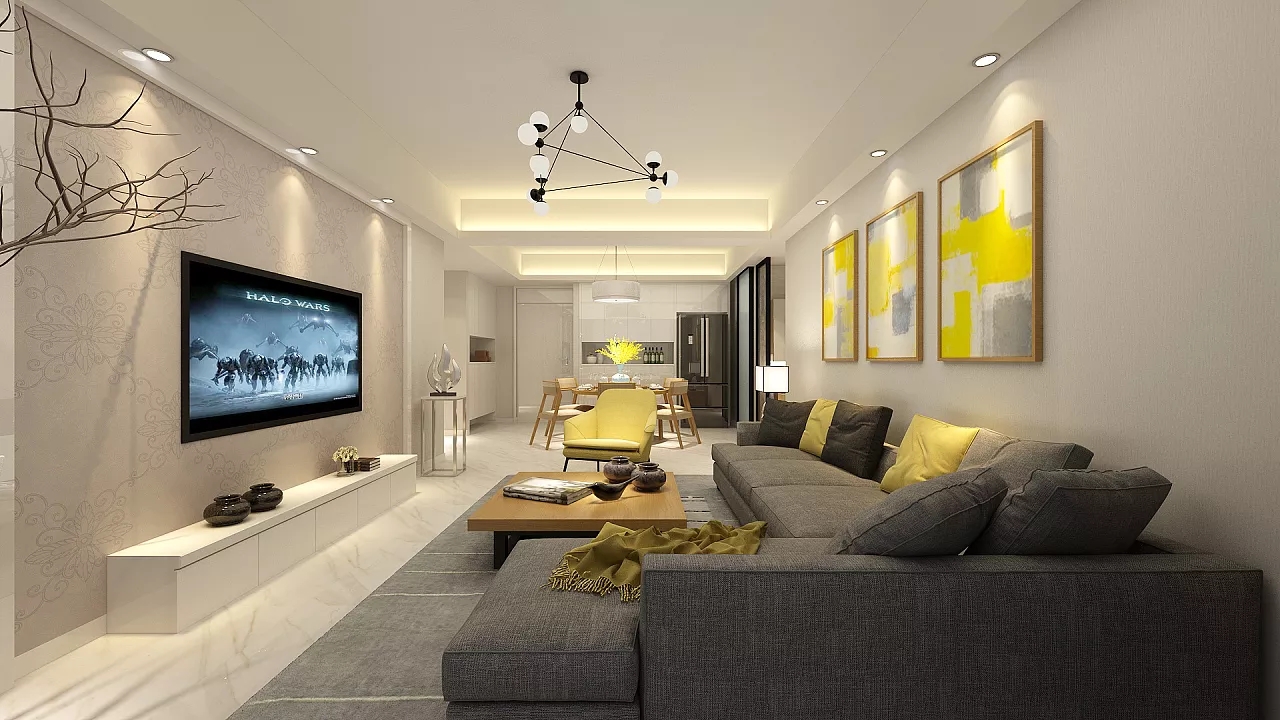 柠檬黄的装饰搭配,清爽又宁静,橘色的勾边让空间变得明朗热烈。宽敞大气的简约装修设计,木纹与石材的装饰也是相辅相成,百叶窗的阳光,为家装增添了几分明媚。舒适而大气,是我们本真的享受。
