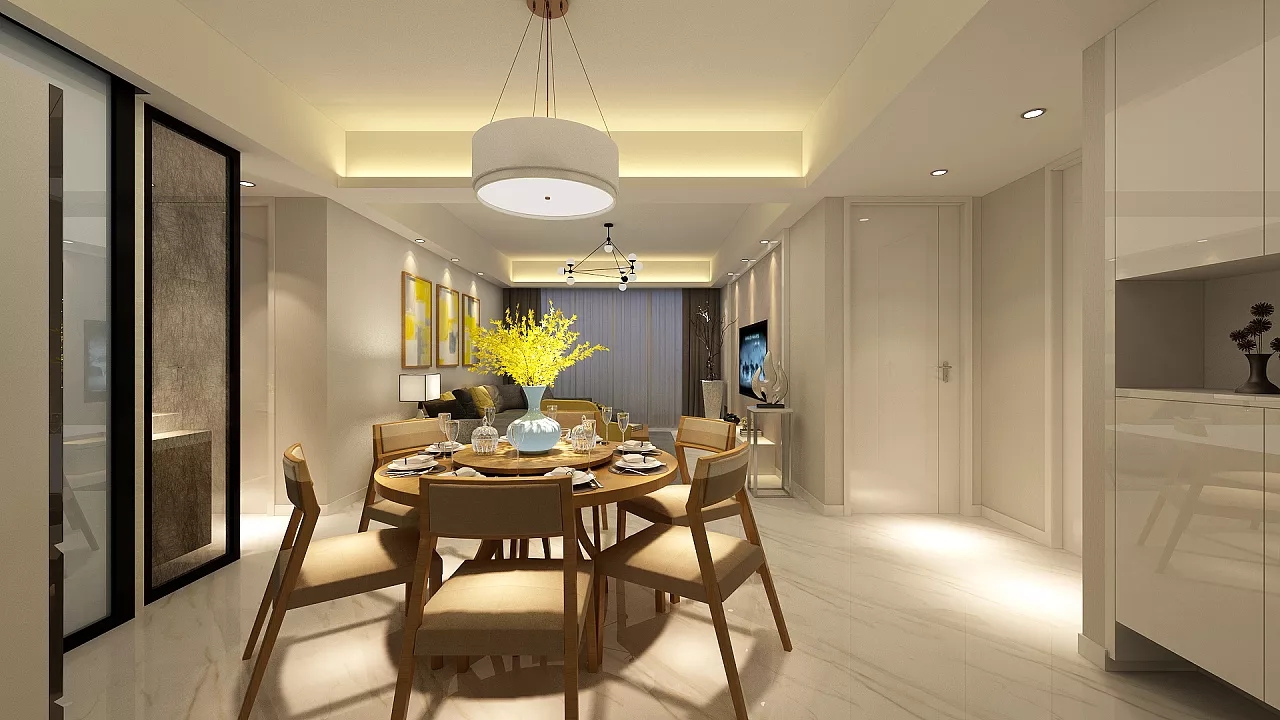 开放式的餐厅装修设计,整个空间流畅自然。