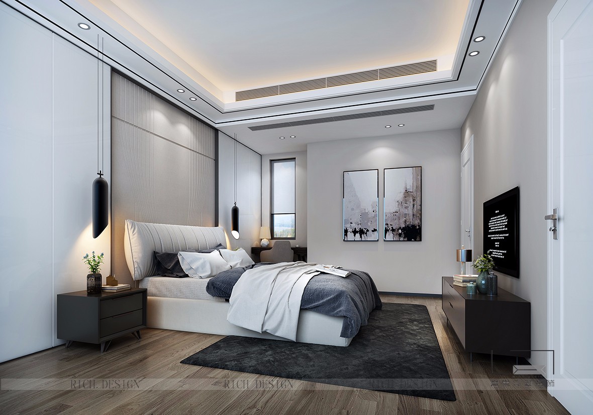随性简单的卧室,空间线条多为干练的直线,使用大面积的纯色拼接,没有过于繁杂的装饰简单清爽。慵懒的气氛尤为浓厚,带给人无限的舒适享受。