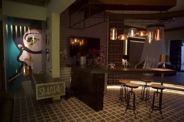 波西米亚的挂毯,极具工业风的玻璃吊灯,大胆的色彩
