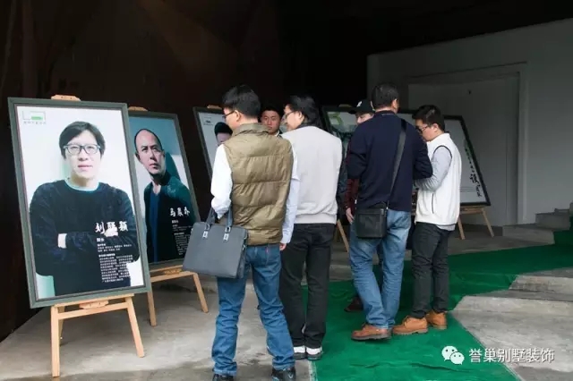 从签到处,领完随手礼后,拾级而上,是二楼的设计师作品展示区。这里摆放着十几位享誉盛名设计师最新的别墅作品实景展示及设计大咖简介。走到此处,客户可以从这些展品中了解到庞大的设计师团队资质,并从中看到自己中意的作品。